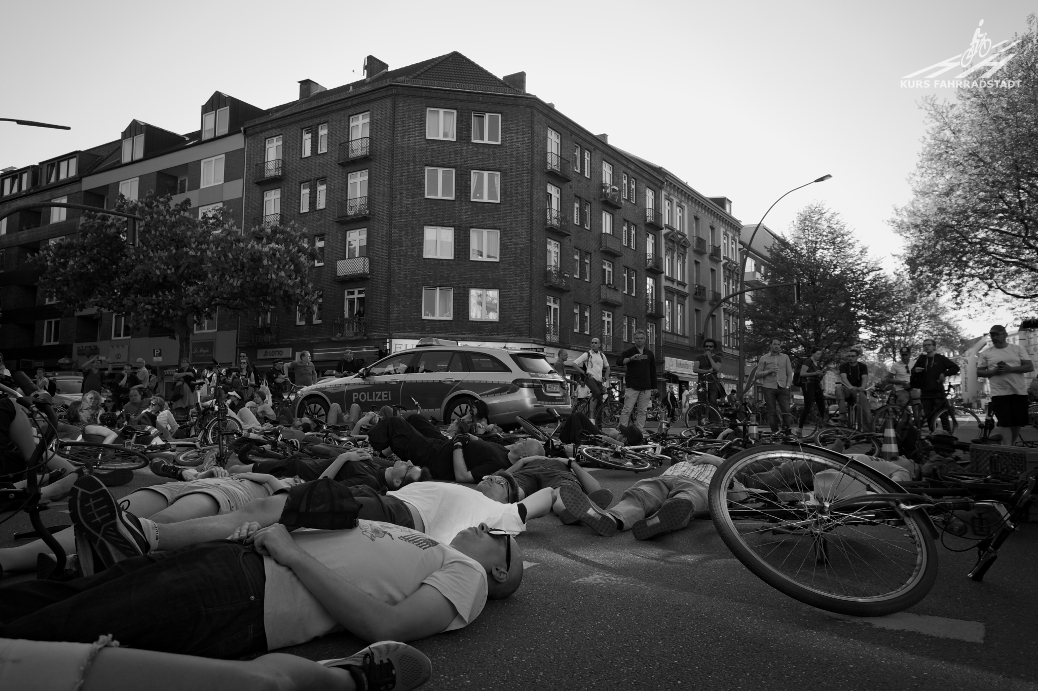 Heute Abend gab es eine Mahnwache an der Unfallstelle. Viele Menschen sind gekommen und haben sich auf die Straße gelegt. Das ist ein starkes Zeichen und wichtig, denn nun hat Hamburg schon das zweite Fahrradopfer in dieser noch sehr jungen Fahrradsaison zu beklagen. Soeben bekomme ich die Meldung, dass es heute in München ebenfalls einen tödlichen Unfall gab. Ein 9-jähriges radelndes Mädchen wurde auch hier von einem abbiegenden LKW überfahren. Es ist unfassbar.