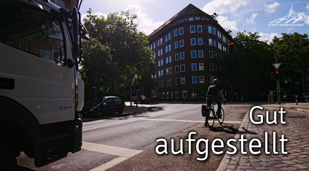 An dieser Stelle noch kurz der kleine Hinweis, dass wir grundsätzlich an Straßen wie denen, um die es hier geht, eine geschützte Radwege-Infrastruktur fordern. Solange es diese aber nicht gibt, sind oben genannte Aufstellflächen also kein Widerspruch. Denn sie können Leben retten – sind sofort umsetzbar und kosten in der Regel ebenfalls nur ein wenig weiße Farbe – leider aber auch viel Mut bei den Entscheidern.