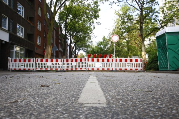 Baustelle Langenfelder Damm. Könnte hinterher mit Durchfahrtsverbot für KFZ belassen werden, ausgenommen werden müssten nur die Busse der Linie 4.