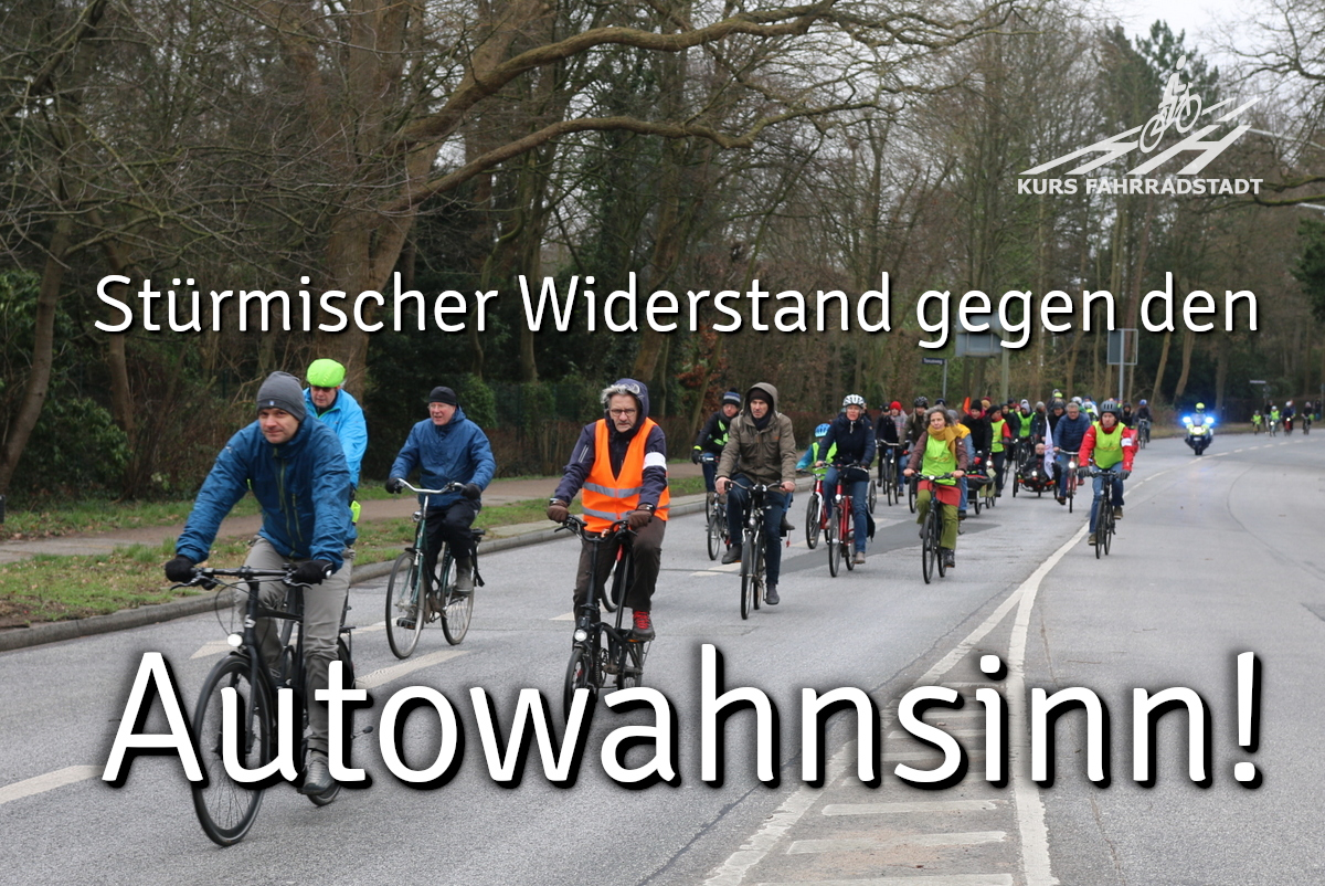KURS FAHRRADSTADT war heute trotz Sturmtief Sabine ein zweites Mal auf der Elbchaussee. Weil wir die katastrophalen Neuplanungen schlicht nicht unkommentiert lassen wollen. Weil wir den Autowahnsinn auf der Elbchaussee endlich stoppen wollen.