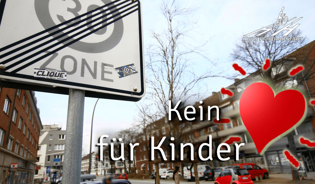 Menschen flanieren von einer zur anderen Straßenseite, Kinder laufen herum und viele beobachten das Treiben bei einer Tasse Kaffee auf den gastronomischen Außenflächen. Mit ihren alten Bäumen und der Jugenstilbebauung strahlt die Lappenbergsallee ein ganz besonderes kosmopolitisches Flair aus. Doch bis vor Kurzem durften Autos und LKW hier mit 50 km/h durchfahren. Nach zähem Kampf wurde ein stückhaftes und verwirrendes Tempo 30 Puzzle vor sieben Kitas auf die Straße gelegt – eine letzte Kita geht bisher leer aus und das nur deshalb, weil ihr Ausgang auf den Innenhof geht, obwohl die Kinder natürlich trotzdem Richtung Straße laufen. Eine besondere Posse, an der sich ablesen lässt, wie sehr der fließende Verkehr in Hamburg weiterhin die Oberhand hat. Doch schauen wir mal genauer hin was passiert ist: