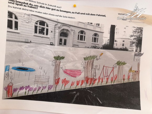 Die Schülerinnen und Schüler der Schule sind diejenigen, die einen großangelegten Beteiligungsprozesses nun so richtig ins Rollen bringen. Von Januar bis Mitte Februar werden in der Schule Ideen gesammelt, danach findet ein Schüler:innen Workshop statt, bei dem es gilt, diese Ideen in Pläne zu übertragen und damit vorstellbar zu machen.