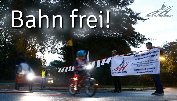 Wir demonstrieren, wie wir uns die lebenswerte Fahrradstadt Hamburg wünschen.